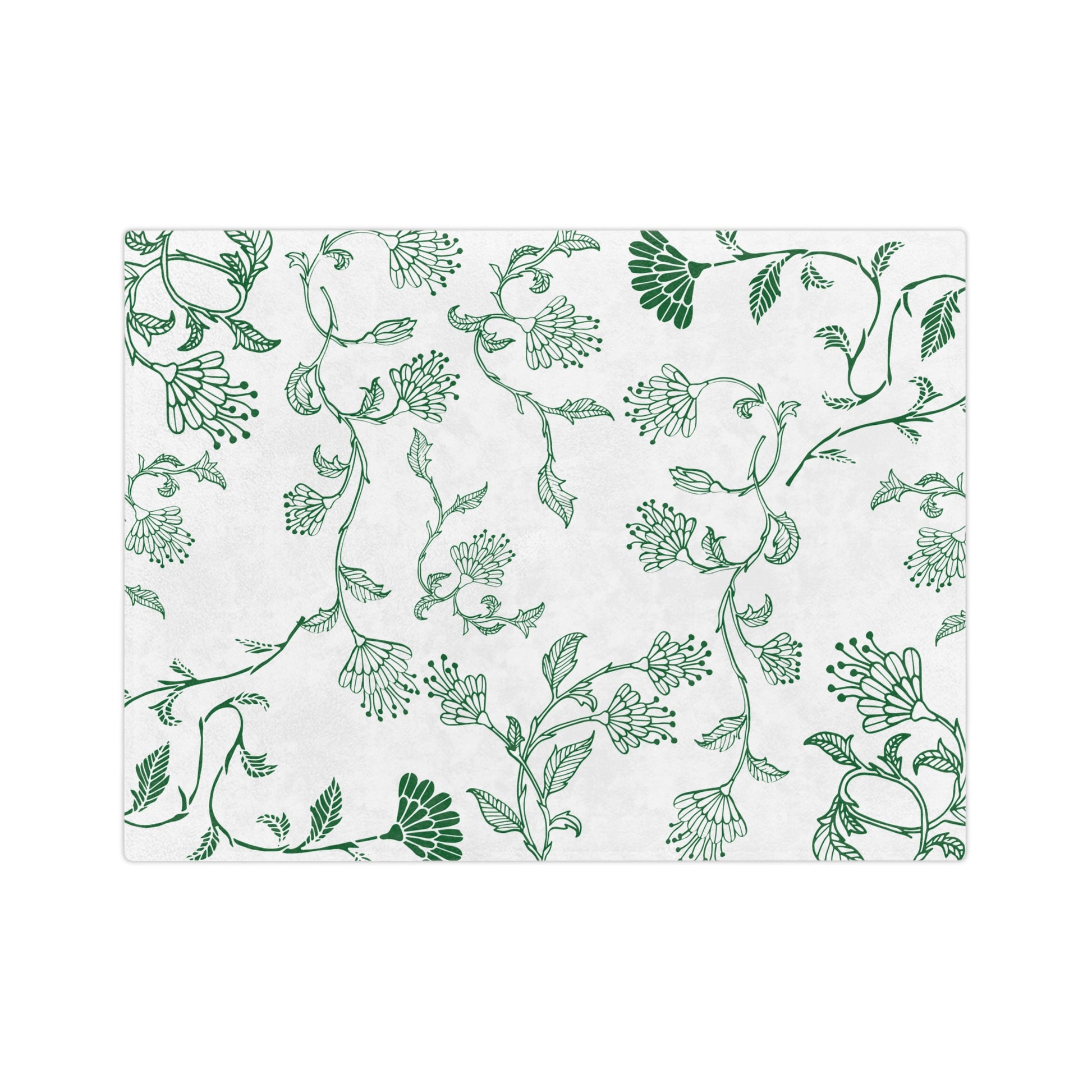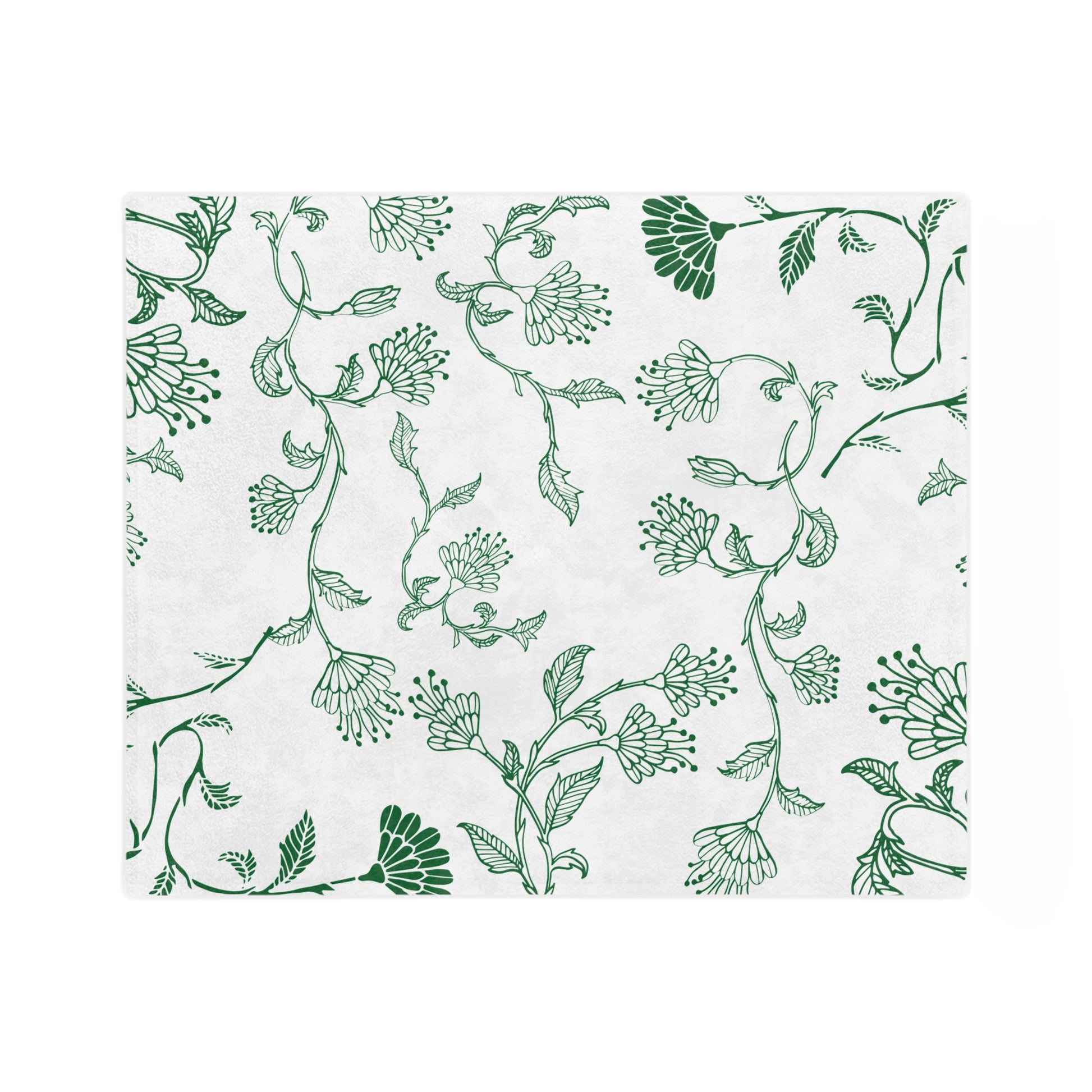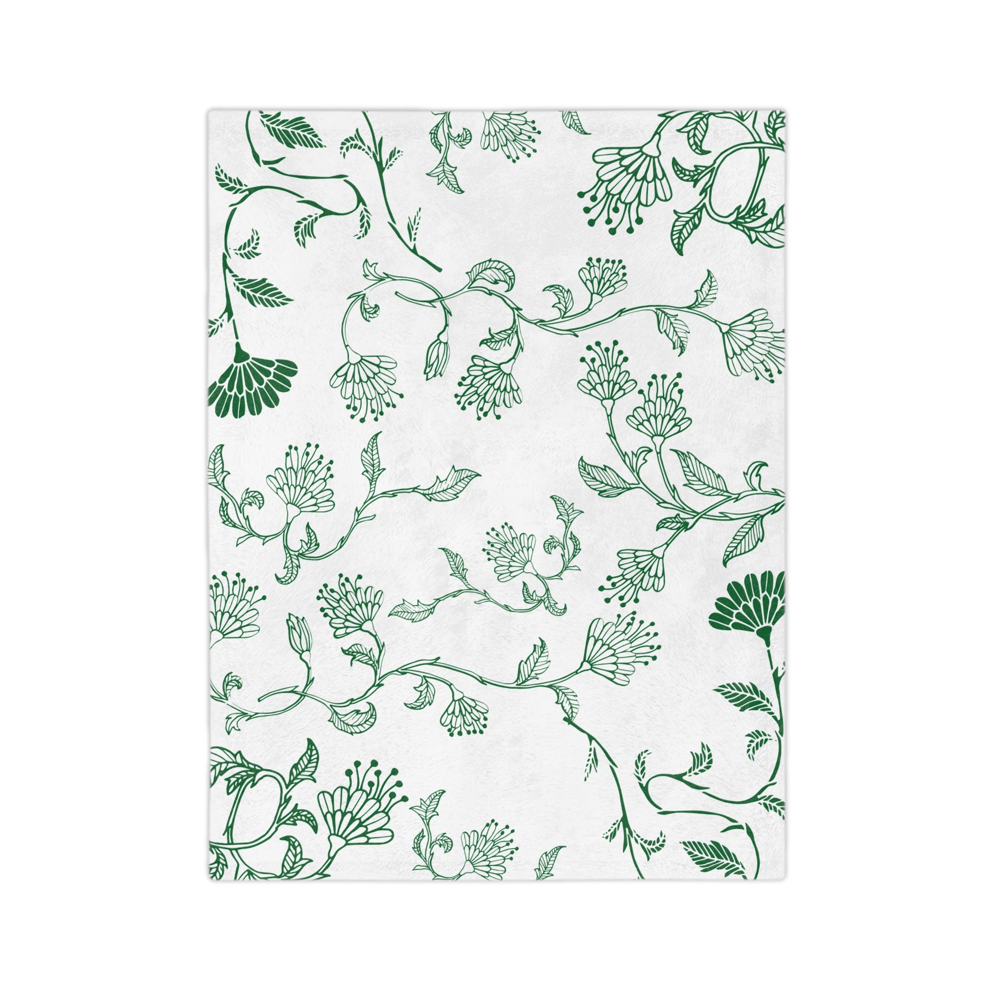 Botanical Print Velveteen Microfiber Blanket – Cozy Home Decor, Gifts for Friends, Floral Throw Blanket, Green and White