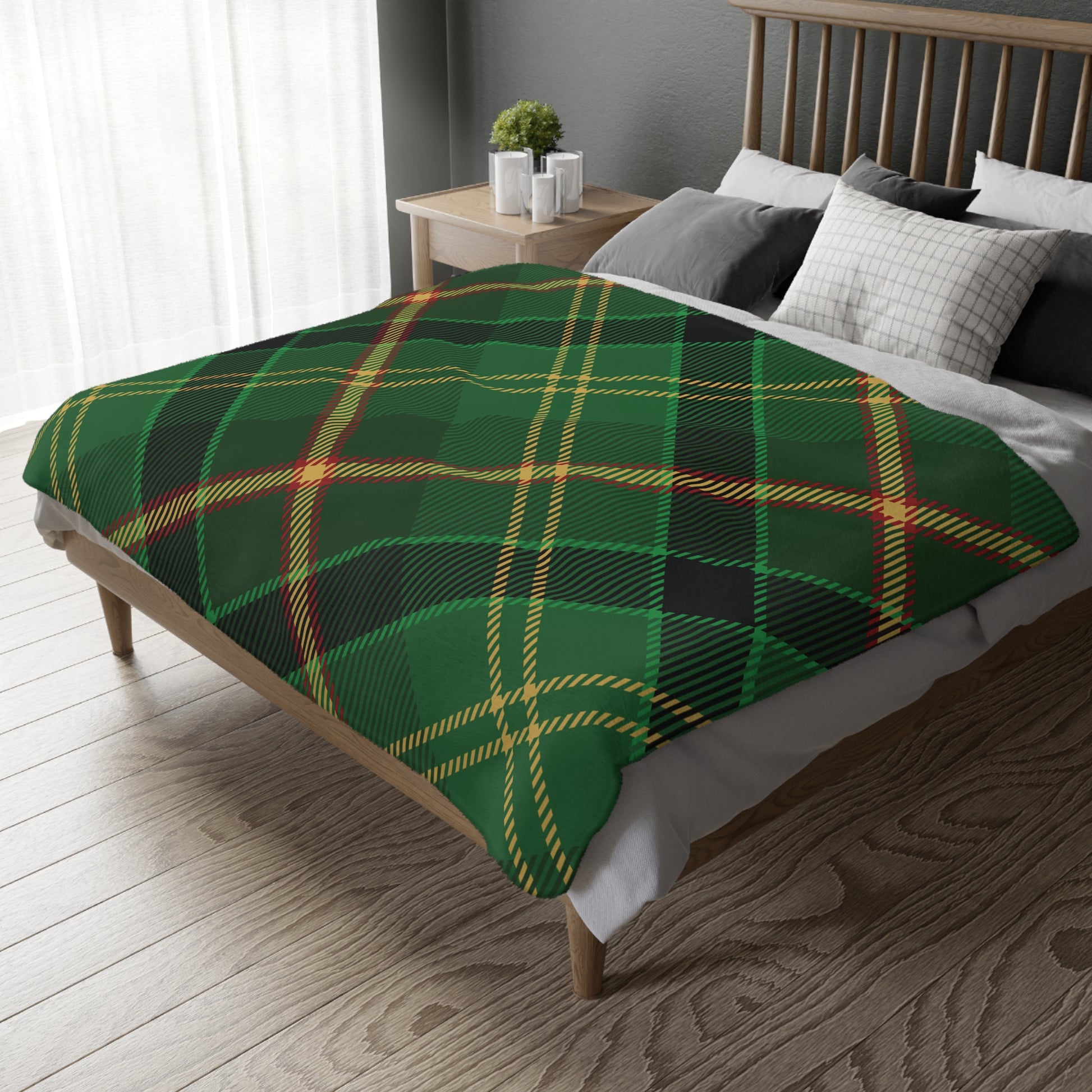 Cozy Plaid Velveteen Microfiber Blanket, Two-Sided Print, Perfect Gift for Cozy Nights, Home Decor, Holiday Snuggles, Green Blanket