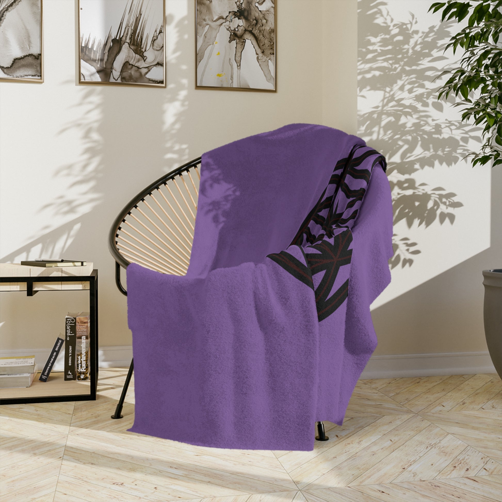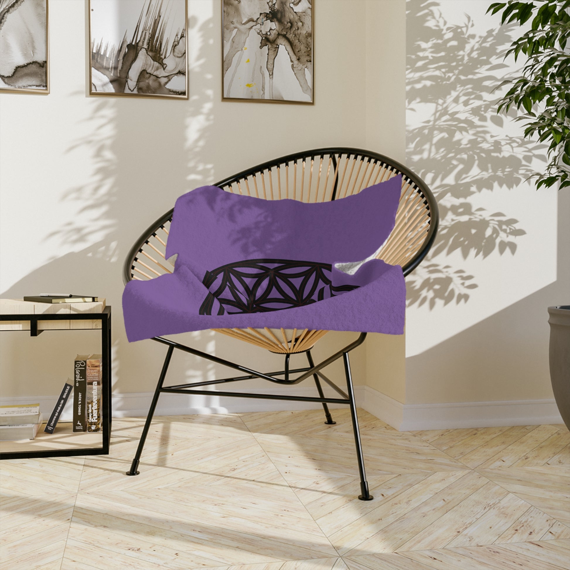 Lavender Velveteen Microfiber Blanket with Flower of Life Design, Cozy Throw for Meditation, Home Decor, Gift for Yoga Lovers
